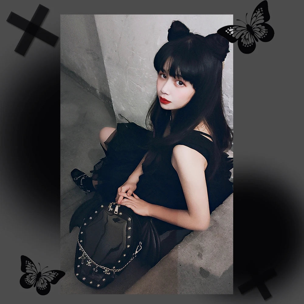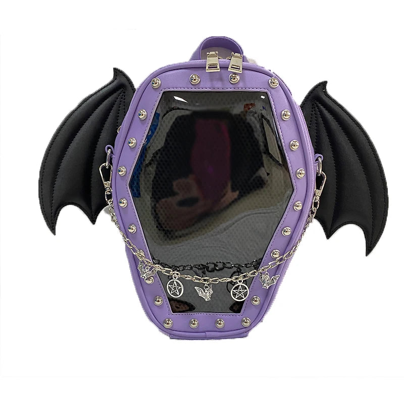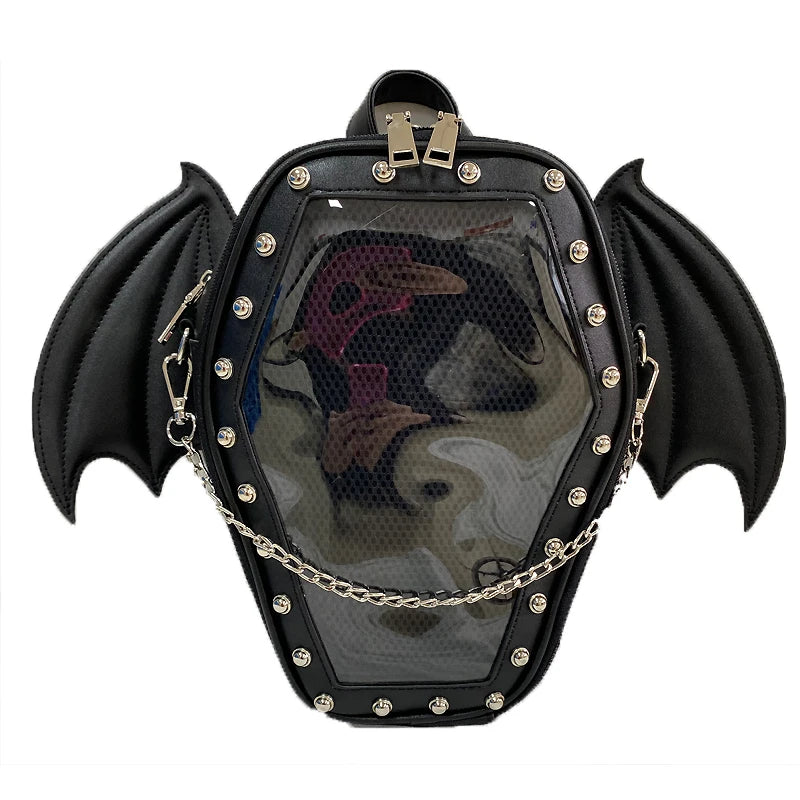 Bat Wings Ita Backpack Enamel Pin Display Shoulder Bag Goth Pin Collector Female Small Clear School Bag Punk Ita Purse Bag