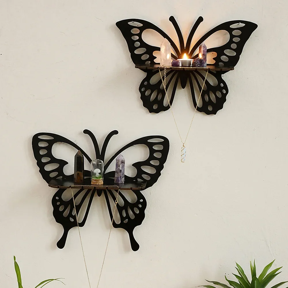 Black Wooden Butterfly Shelf Bomisia Hollow Crystal Display Wall Decor Handmade Home Decoration Storage Accessories