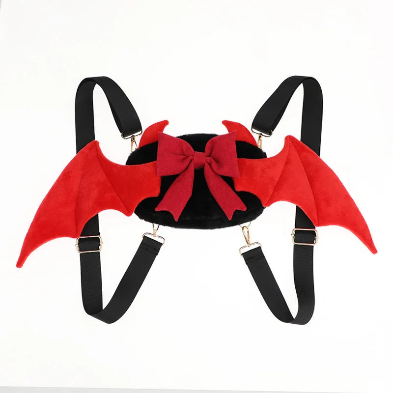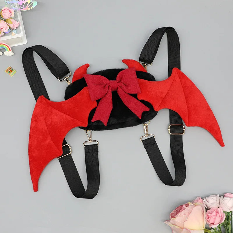 Halloween Fallen Angel Devil Bat Wings Phone Purse Children Candy Bag Anime Lolita Girl Plush Backpacks Cute Bow Handbag Cosplay