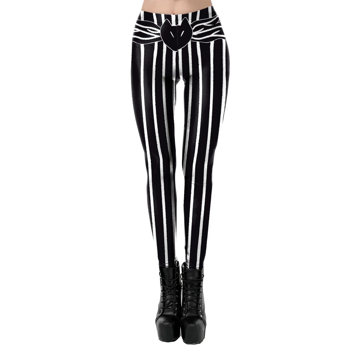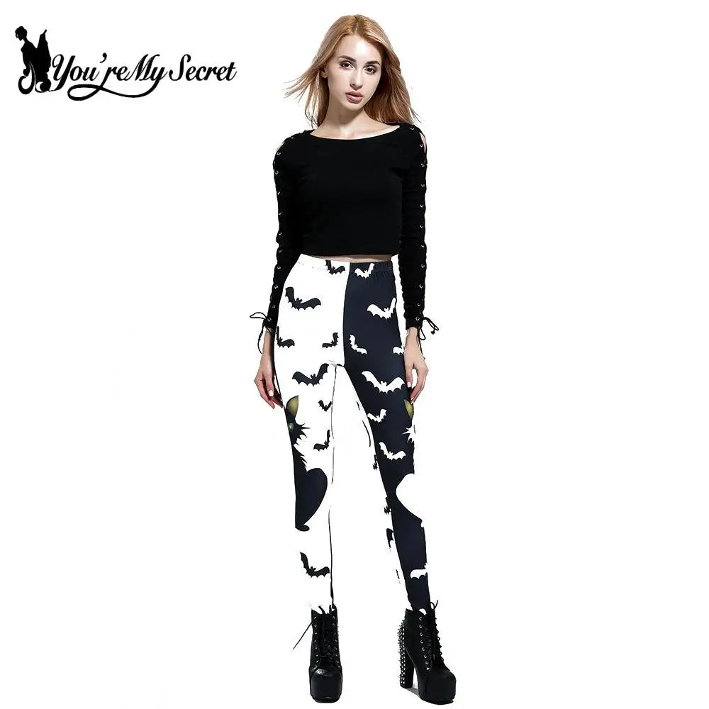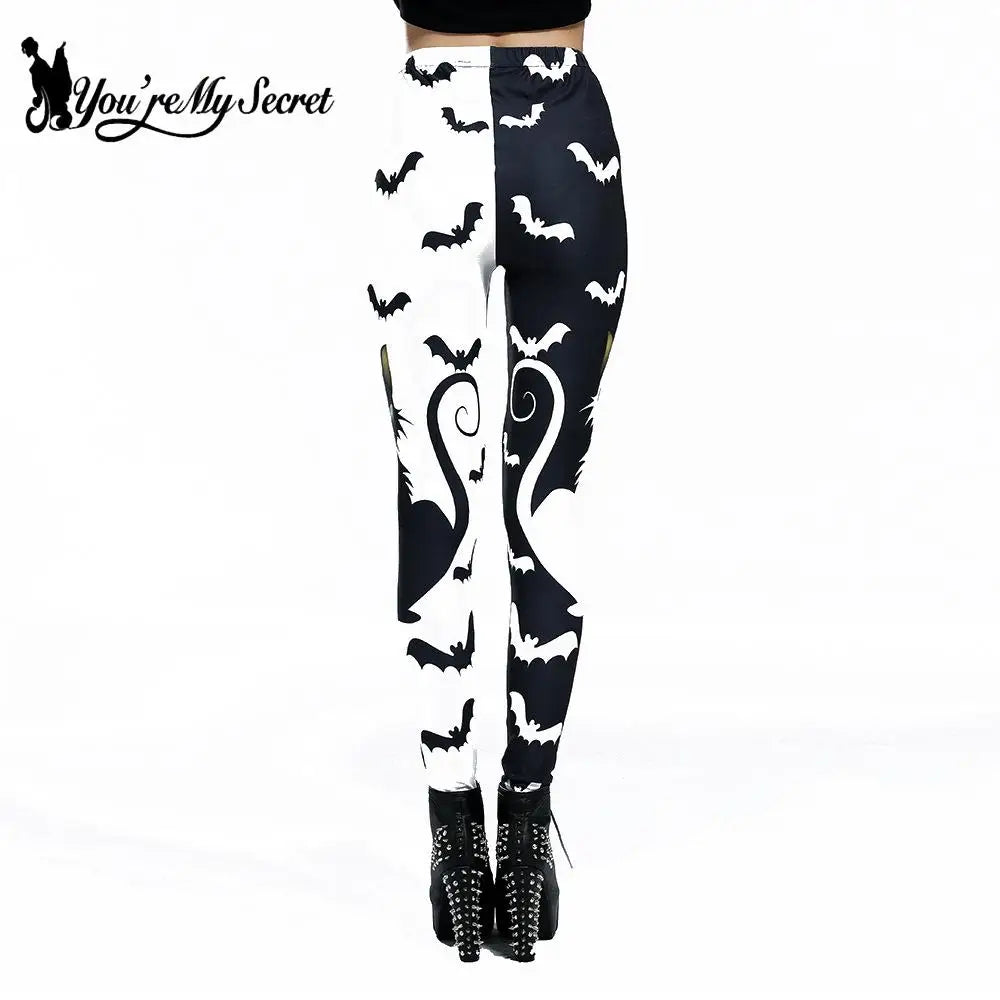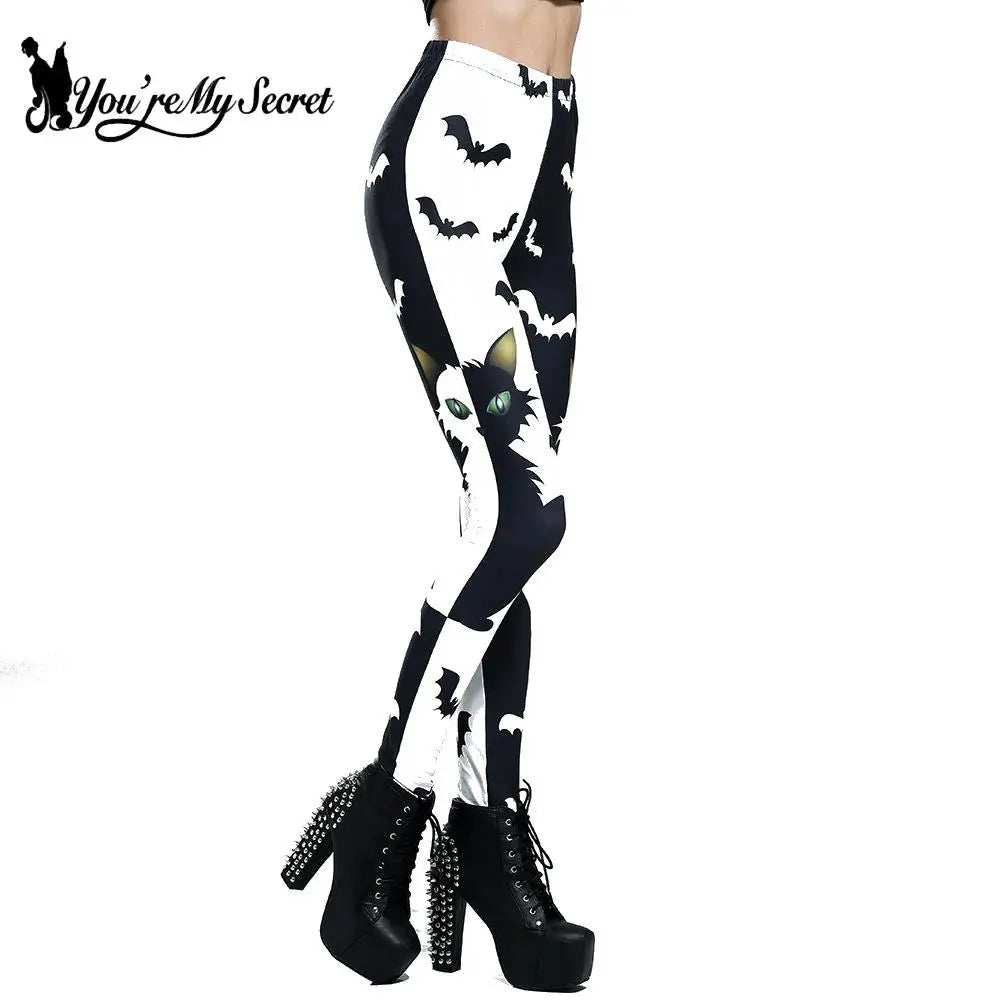 [You're MySecret] Sexy Sanding Women Cropped Pants High Waist Elastic Leggings Ouija Cat Cartoon Leggin Black White Bats Trouser